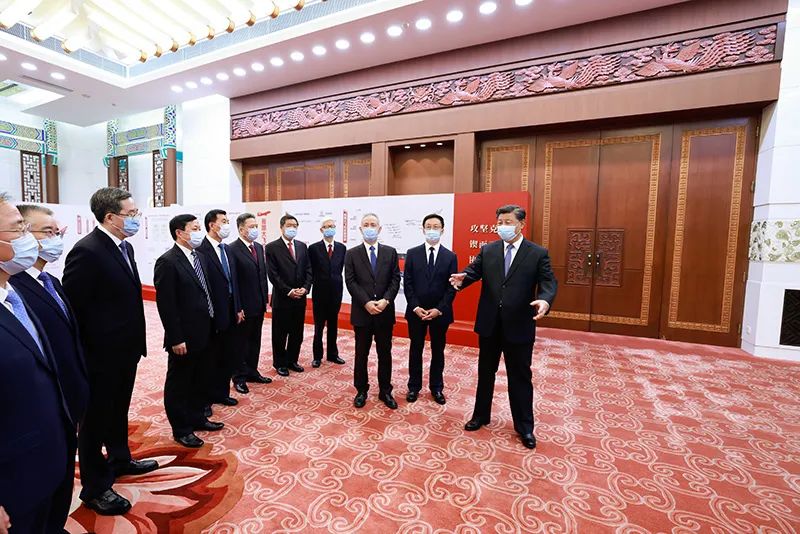 9月30日,黨和國家領導人習近平、韓正等在北京人民大會堂會見C919大型客機項目團隊代表并參觀項目成果展覽。這是習近平等參觀項目成果展覽。新華社記者 李學仁 攝