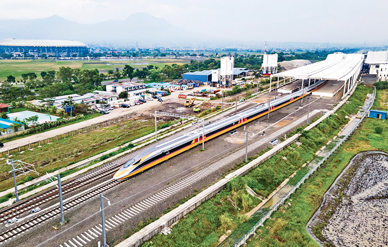 ?帶一路”倡議和中印尼兩國(guó)務(wù)實(shí)合作的標(biāo)志性項(xiàng)目,雅萬高鐵全長(zhǎng)142公里,最高設(shè)計(jì)時(shí)速350公里,連接印尼首都雅加達(dá)和萬隆,是中國(guó)高鐵首次全系統(tǒng)、全要素、全產(chǎn)業(yè)鏈在海外建設(shè)項(xiàng)目。圖為2022年11月16日,高速鐵路綜合檢測(cè)車行駛在雅萬高鐵試驗(yàn)段(無人機(jī)照片)。新華社發(fā) 焦宏濤/攝